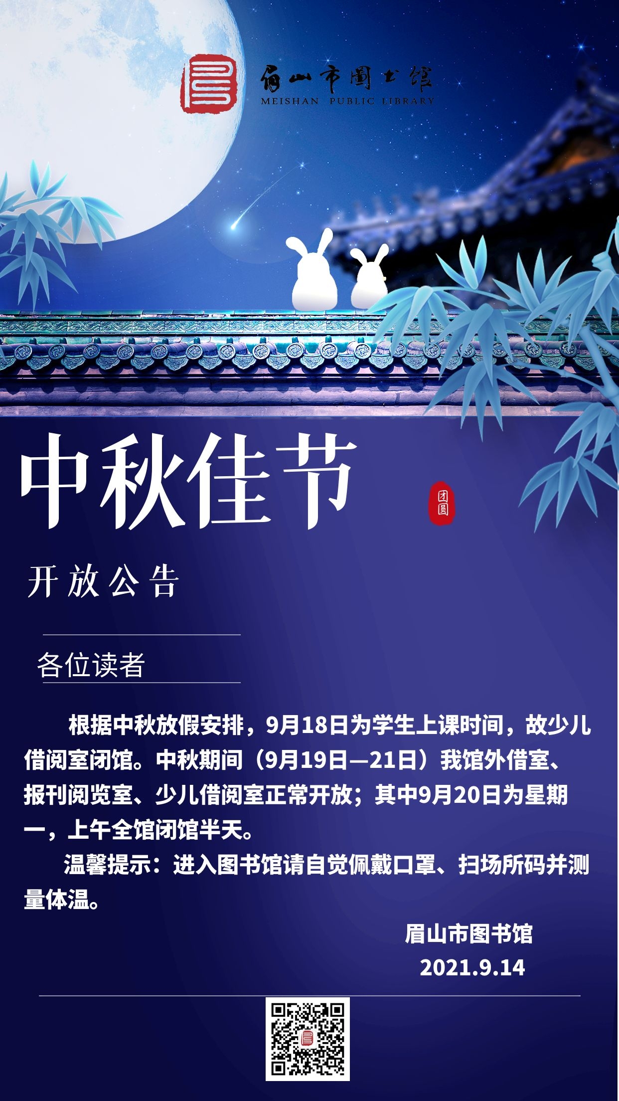 眉山市图书馆中秋开放公告