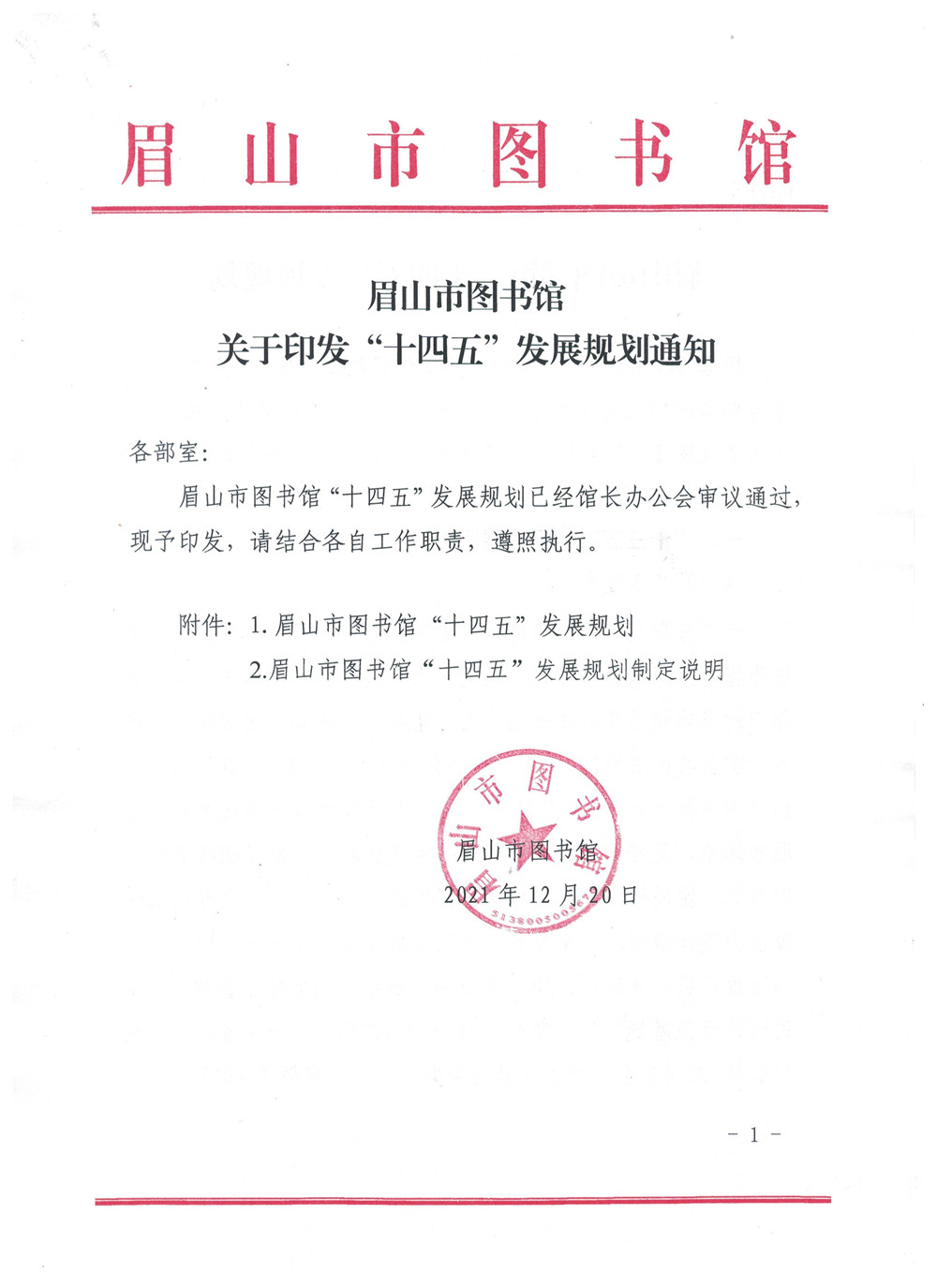 眉山市图书馆关于印发“十四五”发展规划通知