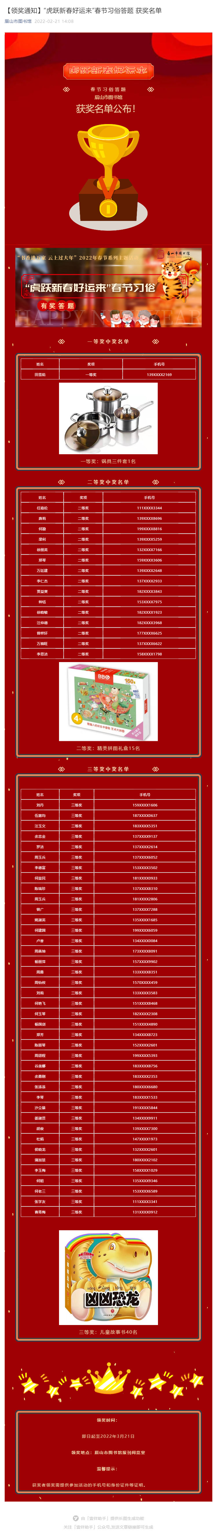 【领奖通知】“虎跃新春好运来”春节习俗答题 获奖名单
